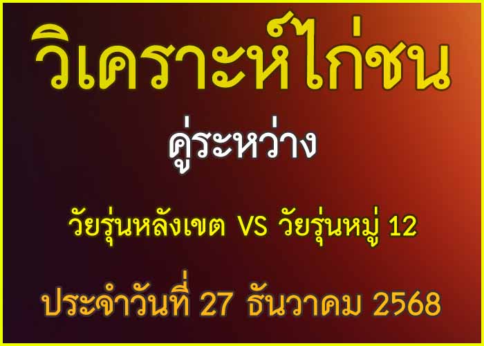 วิเคราะห์ไก่ชน คู่ระหว่าง วัยรุ่นหมู 12 VS วัยรุ่นหลังเขต สังกัด ศ.สะพานสูง&ชบาไก่ชน ประจำวันที่ 24 ธันวาคม 2025