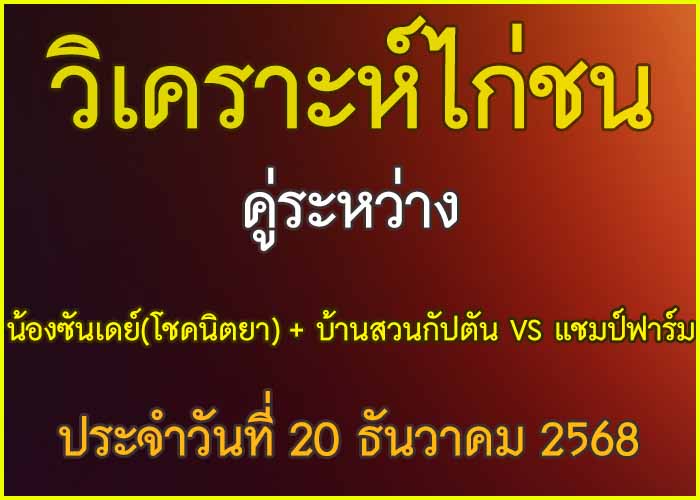 วิเคาะห์ไก่ชน คู่ระหว่าง น้องซันเดย์ (โชคนิตยา) + บ้านสวนกัปตัน สังกัด หมอบุญ VS แชมป์ฟาร์ม 18 ธันวาคม 2025