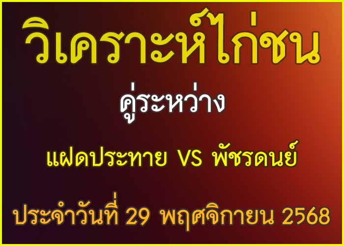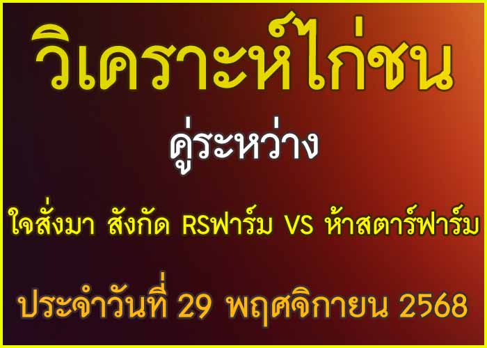 วิเคราะห์ไก่ชน คู่ระหว่าง ใจสั่งมา สังกัด RSฟาร์ม VS ห้าสตาร์ฟาร์ม ประจำวันที่ 29 พฤศจิกายน 27 พฤศจิกายน 2025