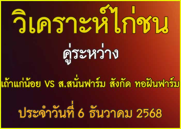 วิเคราะห์ไก่ชน คู่ระหว่าง เถ้าแก่น้อย VS ส.สนั่นฟาร์ม สังกัด ทอฝันฟาร์ม ประจำวันที่ 6 ธันวาคม 27 พฤศจิกายน 2025