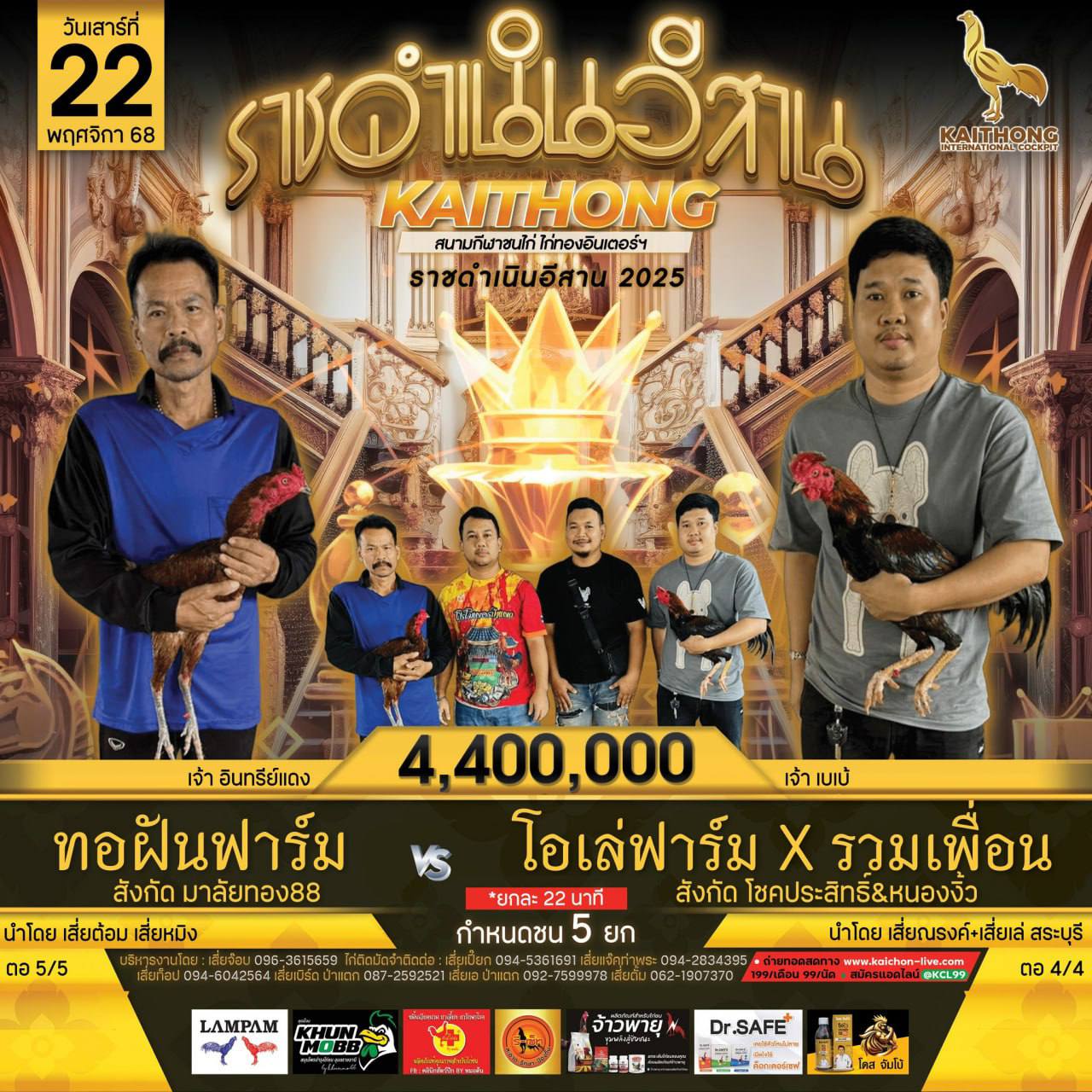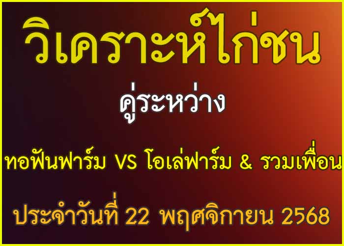 วิเคราะห์ไก่ชน คู่ระหว่าง ทอฝันฟาร์ม VS โอเล่ฟาร์ม&รวมเพื่อน ประจำวันที่ 22 พฤศจิกายน 2568 21 พฤศจิกายน 2025