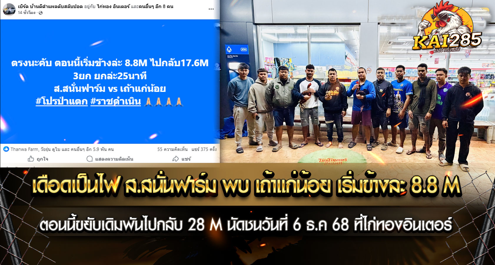 เดือดเป็นไฟ ส.สนั่นฟาร์ม พบ เถ้าแก่น้อย เริ่มข้างละ 18 M เดือดเป็นไฟ ส.สนั่นฟาร์ม พบ เถ้าแก่น้อย เริ่มข้างละ 18 […] 22 พฤศจิกายน 2025