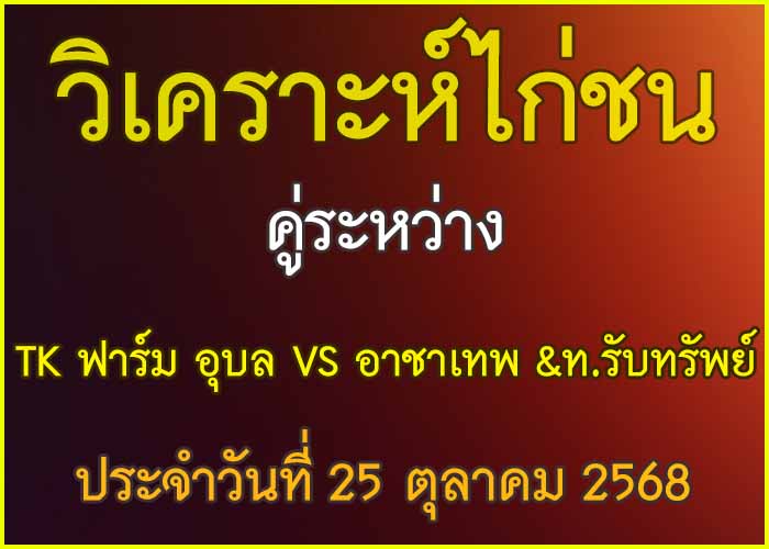 วิเคราะห์ไก่ชน คู่ระหว่าง TK ฟาร์ม อุบล VS อาชาเทพ &ท.รับทรัพย์ สังกัด ราชสีห์อีสานฟาร์ม 21 ตุลาคม 2025