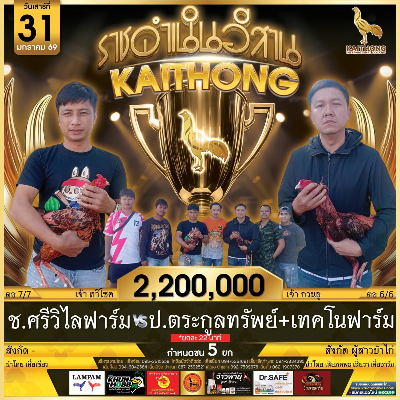 วิเคราะห์ไก่ชน คู่ระหว่าง น้องใหม่ สระแก้ว VS พงษฤทธิ์ฟาร์ม ประจำวันที่ 31 มกราคม 2569 29 มกราคม 2026