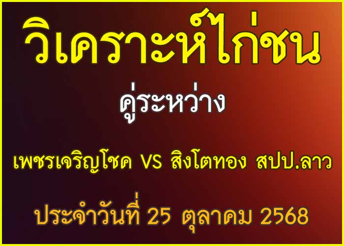 วิเคราะห์ไก่ชน คู่ระหว่าง เพชรเจริญโชค สังกัด ตัวลายไก่ชน VS สิงโตทอง สปป.ลาว ประจำวันที่ 25 16 ตุลาคม 2025