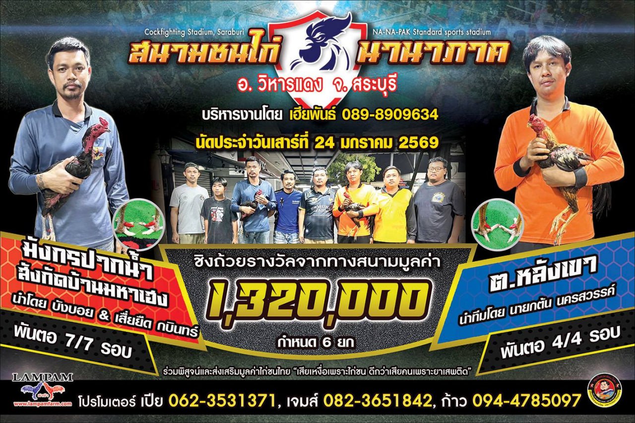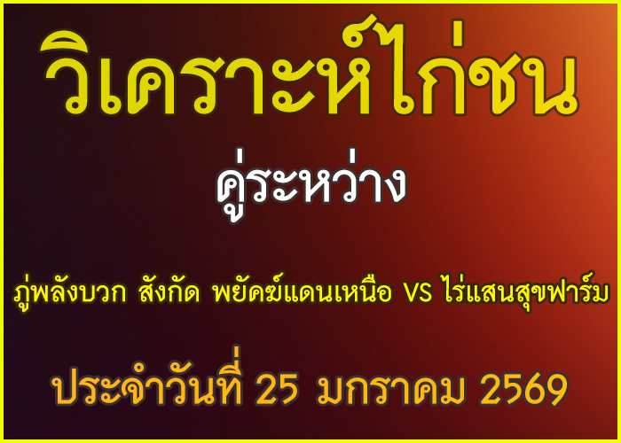 วิเคราะห์ไก่ชน คู่ระหว่าง ภู่พลังบวก สังกัด พยัคฆ์แดนเหนือ VS ไร่แสนสุขฟาร์ม ประจำวันที่ 25 มกราคม 23 มกราคม 2026