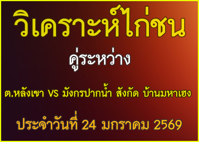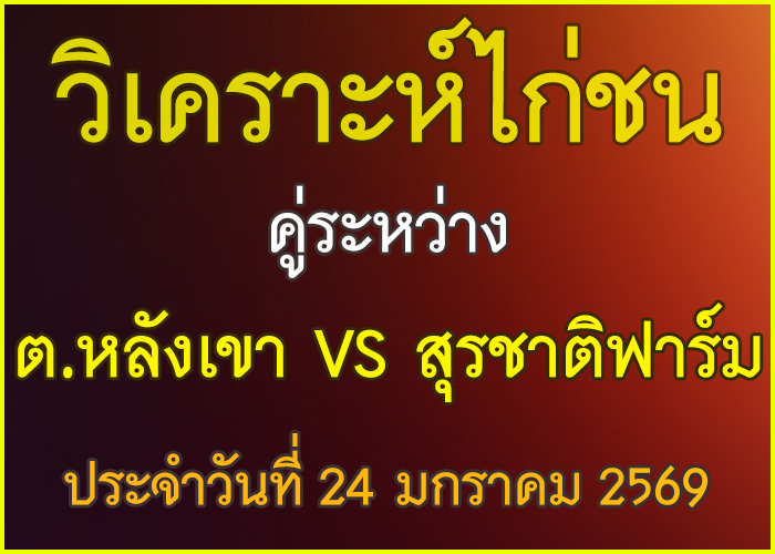 วิเคราะห์ไก่ชน คู่ระหว่าง ต.หลังเขา VS สุรชาติฟาร์ม ประจำวันที่ 24 มกราคม 2569