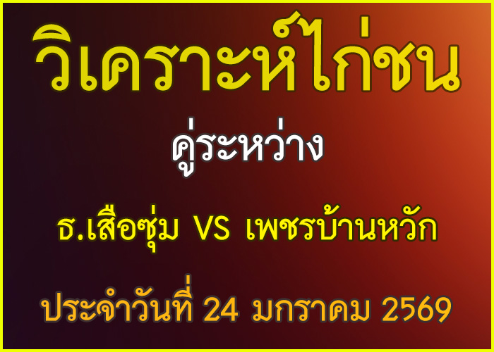 วิเคราะห์ไก่ชน คู่ระหว่าง ธ.เสือซุ่ม VS เพชรบ้านหวัก ประจำวันที่ 24 มกราคม 2569