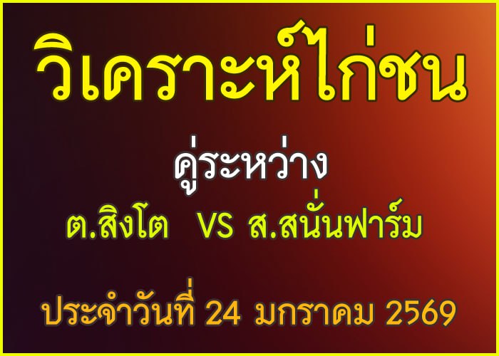 วิเคราะห์ไก่ชน คู่ระหว่าง ส.สนั่นฟาร์ม VS ต.สิงโต ประจำวันที่ 24 มกราคม 2569