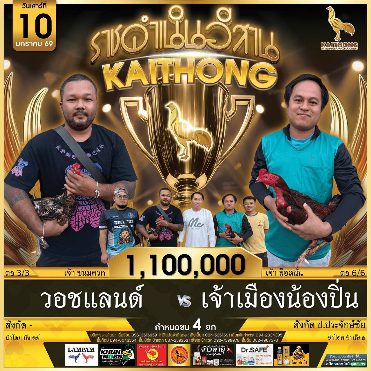 ชื่อไก่ชน : เจ้ากิเลนทอง สถิติการชน : 4 ชนะ : 4