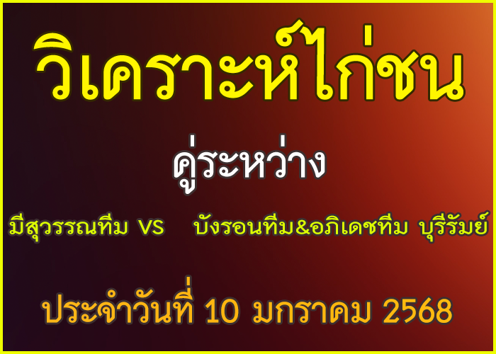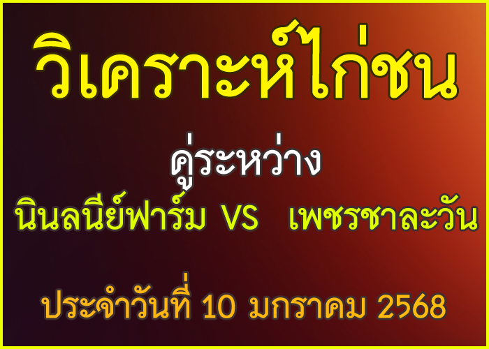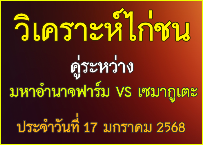 วิเคราะห์ไก่ชน คู่ระหว่าง มหาอำนาจฟาร์ม VS เซมากูเตะ สังกัด สจ. โหน่ง ชลบุรี ประจำวันที่ 8 มกราคม 2026