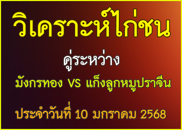 วิเคราะห์ไก่ชน คู่ระหว่าง มังกรทอง สังกัดก.เพชรไพรี VS แก็งลูกหมูปราจีน สังกัด น้องเจด้า 8 มกราคม 2026